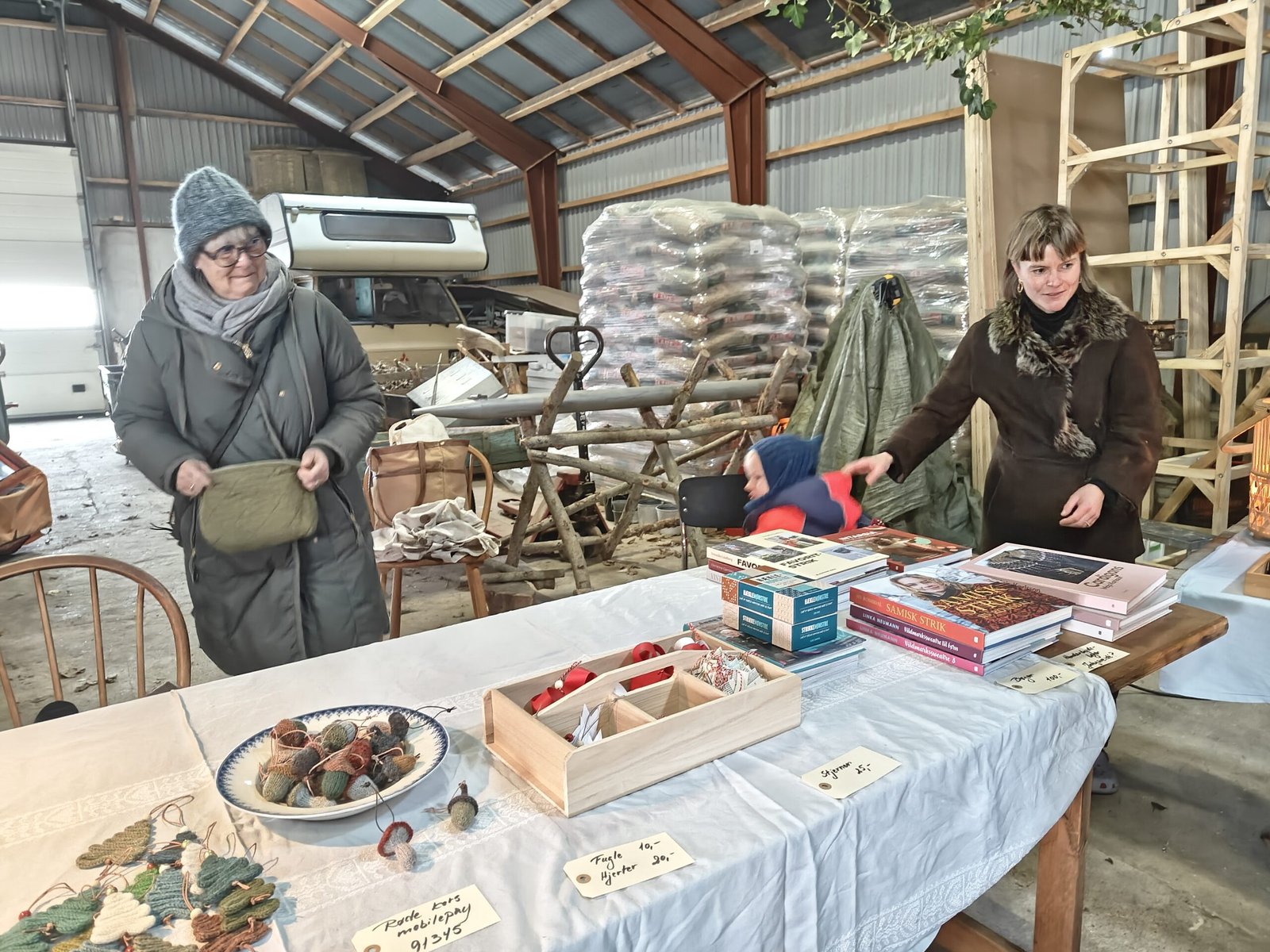 Der var masser af snak og latter; børn der solgte og købte, og voksne, der fandt spændende loppeting og kunsthåndværk i træ, strik, stof og andre materialer. Og så var der Helgas gode norske vafler (i år med mulighed for myseost) og Dugnads gode gløgg. En time eller to kunne de besøgende snildt bruge på at underholde sig med at kigge og snakke, og bodholderne havde vist fint gang i salget.