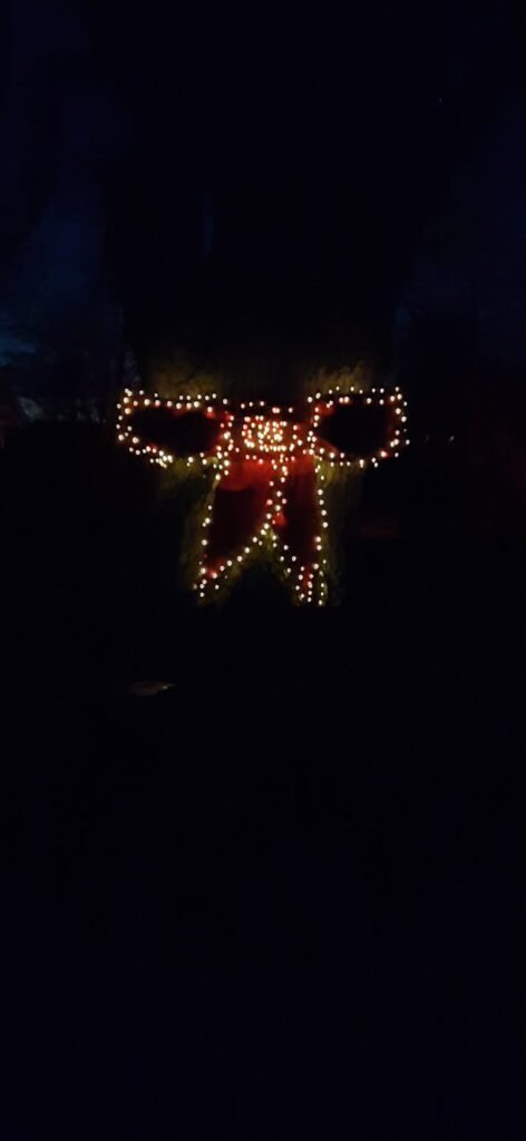 Julen 2024 så vi for første gang “Egen” ved forsamlingshuset i Tårup pyntet med en stor oplyst rød sløjfe .