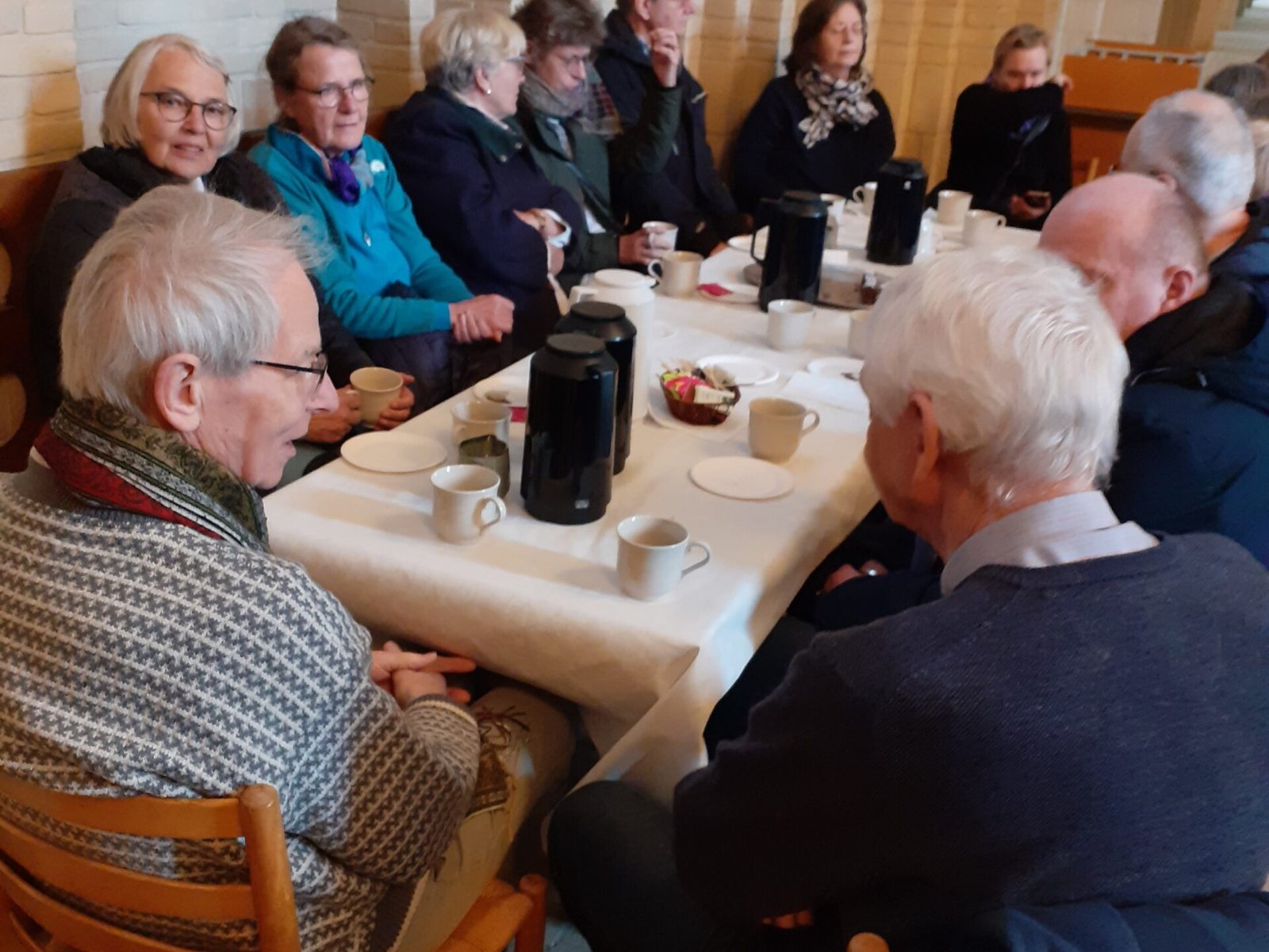 Efter andagten deltog vi i kirkekaffe, og havde nogle hyggelige samtaler med de andre deltager i