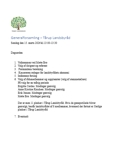 Landsbyrådets årsmøde og generalforsamling 26-01-2026, lagt ind af Marianne Kvistgaard, redaktionsgruppen for taarup.dk