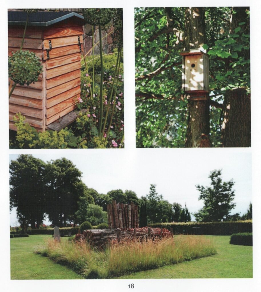 Kirkegården blev i 2013 til 2014 omlagt. Det blev etableret store områder omkranset af staudebeplantning.