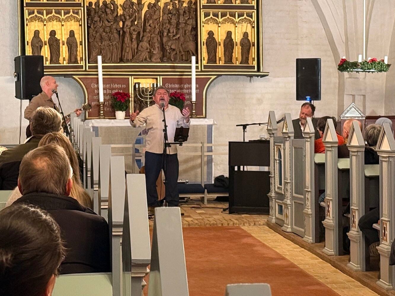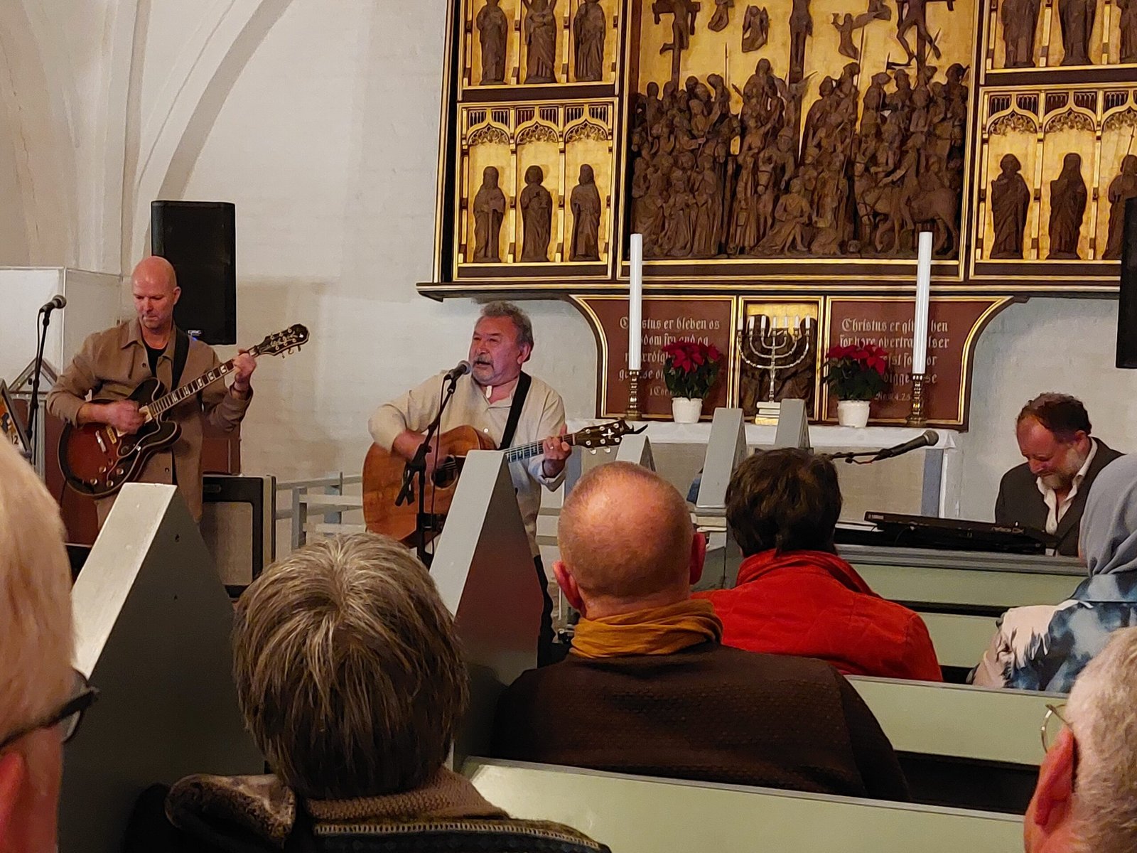 I lidt over en time fyldte Lyberts store stemme kirkerummet – smukt akkompagneret af pianisten Kristoffer Jul og Simon Krebs på guitar. Det var tydeligt, at de tre kender hinanden godt – tilsammen gav de os alle en flot oplevelse.