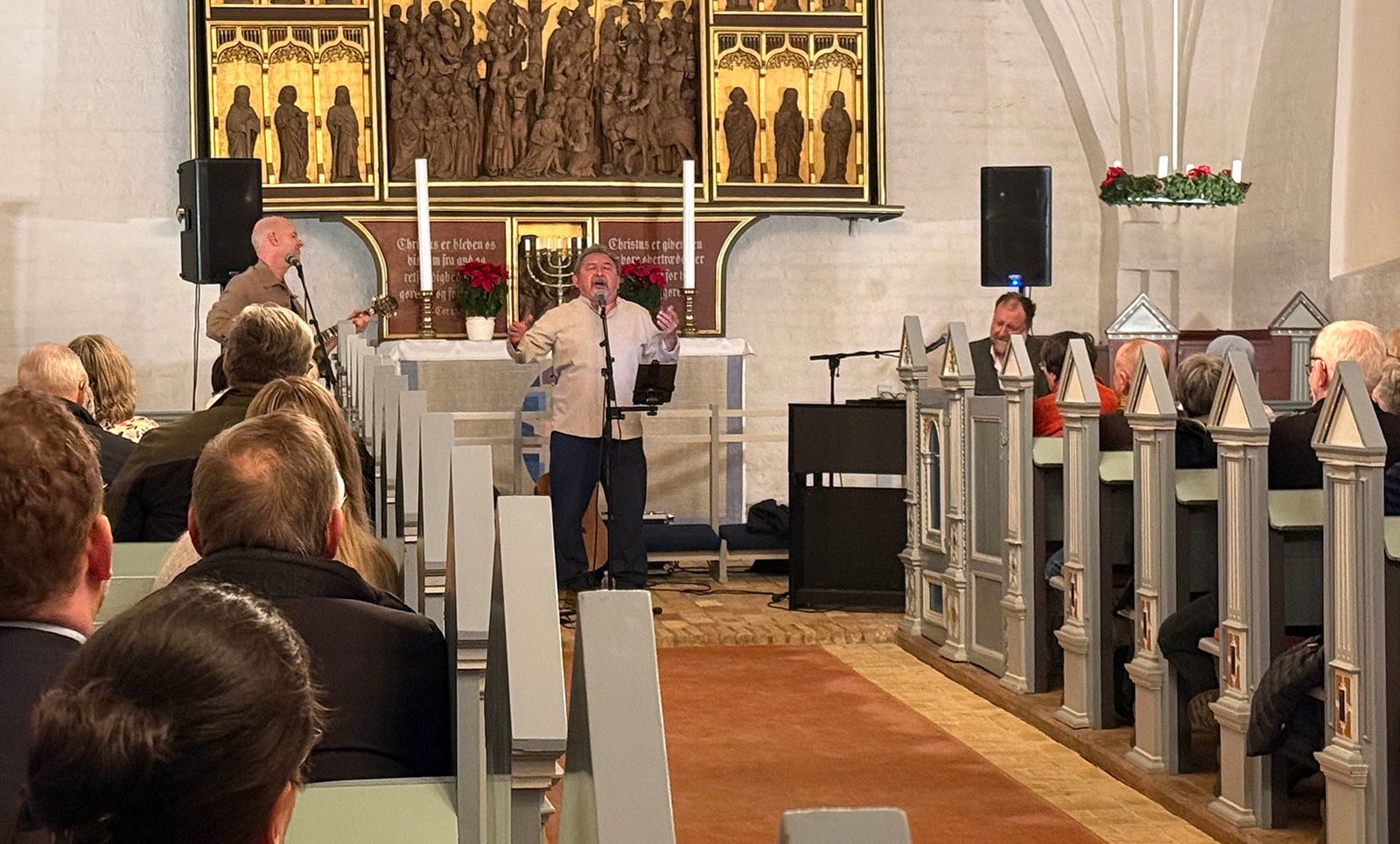 Kirken var fuld af lys og forventning, da sognepræst André Friis Møller bød velkommen til den grønlandske sanger og hans to musikere Kristoffer Jul og “vores egen” Simon Krebs.